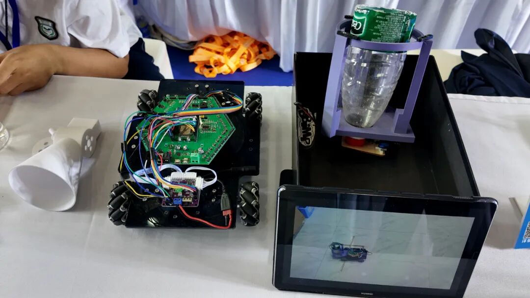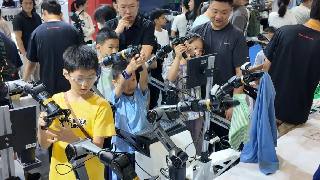 9月5日到8日,2025世界智能产业博览会在重庆举行。这场聚焦智能产业前沿热点的博览会,围绕智能网联新能源汽车、数字城市、智能机器人、低空经济、智能家居5大专业板块,集中展示了3000余项前沿创新产品、前沿技术、应用场景。大会期间,《中国电子报》记者实地探馆,用镜头现场记录下关于“衣食住行”“机器人”“低空经济”“XR技术”等几大热点及重点领域的精彩瞬间。观众正在体验“隔空操作”点餐,背后运用了——无介质全息交互技术中老年人群的护眼神器——智能调焦老花镜,一名观众正在试戴智能饮水机、智能喂食器、智能项圈...考虑为你家的萌宠来一款吗机器人拳击赛现场:“里三层外三层”的观众们在抓拍精彩瞬间开源双臂遥控操作硬件系统:捡起一块小小手帕?轻松“拿捏”!大载重多功能无人机:森林草原防灭火的典型创新型装备虚拟拍摄已经落地影视制作领域,猜猜哪一部科幻/仙侠剧中用到了?柔性智能焊装制造技术:汽车行业质量自动化变革的一股力量 今年的智博会上,来了一批神秘的“参展商”和一些特殊的智能展品。接下来,是时候拿出真正的绝活了!从左到右依次为:杨诗雅、陈杨慕曦、胡祥洪(指导老师)、程思豪、欧阳龙彦由程思豪设计的操场画线机器人:可在炎热或寒冷天气中协助体育老师完成画线工作。由欧阳龙彦设计的自动应急索降系统:自动化操作,适用于灾难逃生与消防员救援。杨诗雅和她设计的知感杯:为包含聋哑人以及盲人在内的所有人设计,采用了触觉、听觉、视觉三种感觉渠道。陈杨慕曦和她设计的“密码水瓶”:瓶口处差异化设计,解决“半瓶水”浪费问题。