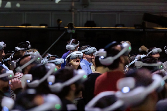 他以威尼斯国际电影节最佳VR体验奖——《巴黎舞会》的创作历程为例,分享道,该作品旨在打破观影界限,让观众与舞者能在同一时空实现沉浸式互动。为此,团队开发出一套全身体动态的追踪和跟踪系统,借助VR和AI技术,让虚拟世界与真实世界相连接,观众不仅可以直接看到舞者,欣赏舞者的表演,还可以抓住舞者的手,获得实时交互的真实体验。此外,为了让虚拟世界显得更加真实,团队在光影表达上也进行了创新,设置了视频投射的光影设置,捕捉真实舞者演出时在光效下产生的影子,融合进虚拟世界,使其更接近于现实世界人们看到的模样。截至目前,《巴黎舞会》已经提供了超过6千次表演。